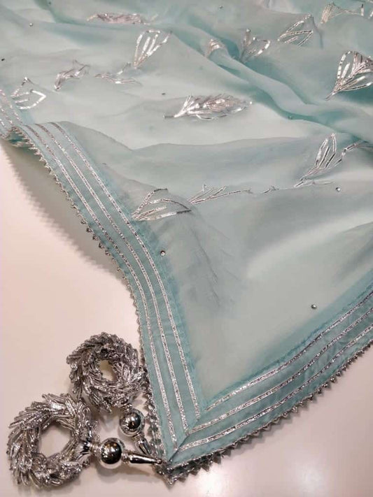 ATHARVA Hand Embroidery Salwar Kameez /Chiffon Dupatta With Stunning Gota & Trim/Custom Stitch Unstitch/Gift/Patiala/Anarkali/Churridar/CH17318 Powder Blue