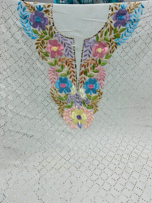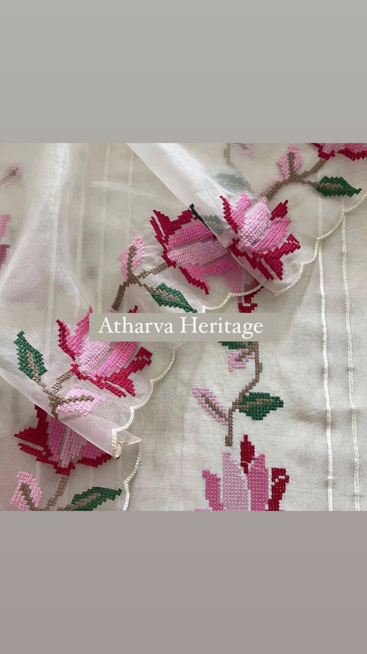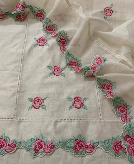 PURE MUL CHANDERI kurta AND Dupatta PARSI GARA UNSTITCHED SUIT CH54238 Ivory