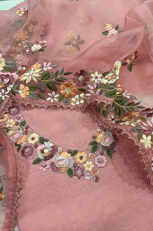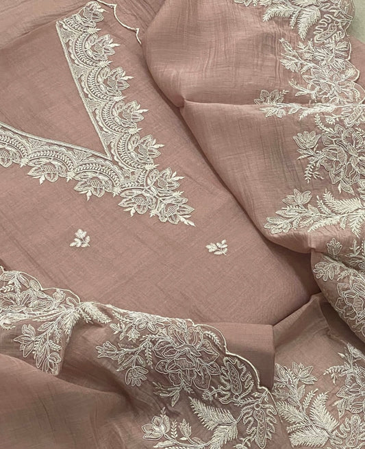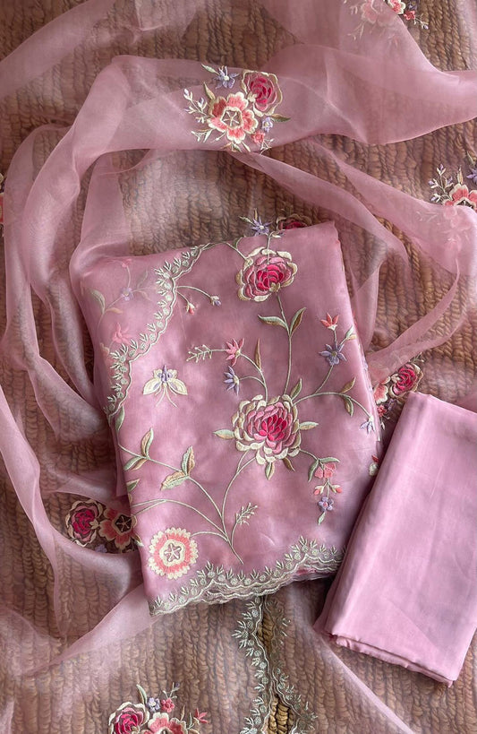 "Enchanting Elegance: Pure Silk Pakistani Suits Adorned with Exquisite Parsi Embroidery MS003 Powder Pink