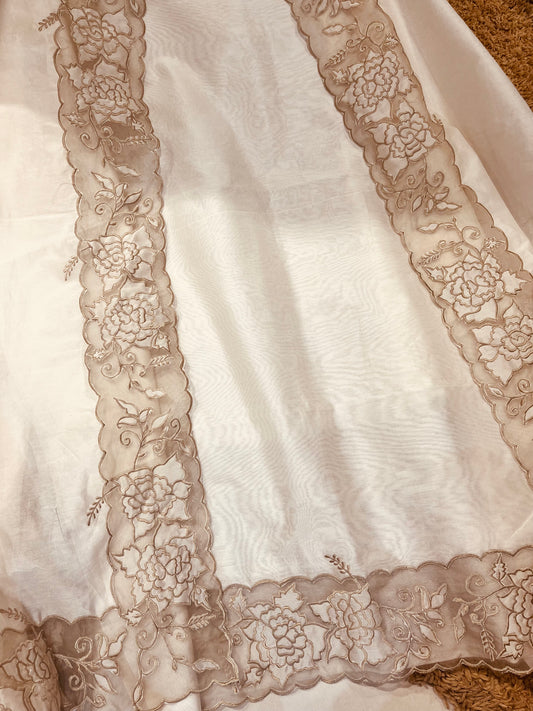 PURE CHANDERI SILK AND ORGANZA EDITS CHO001C Cream