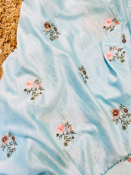 PURE MUL CHANDERI kurta AND Dupatta Thread Embroidered UNSTITCHED SUIT CH54240B Blue
