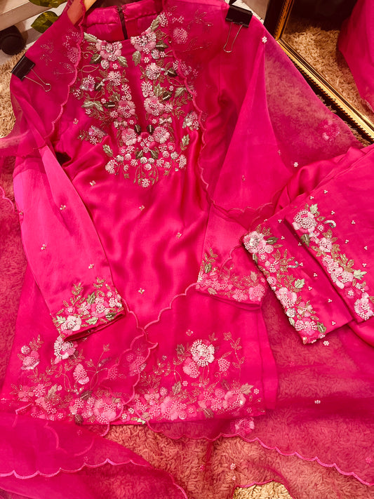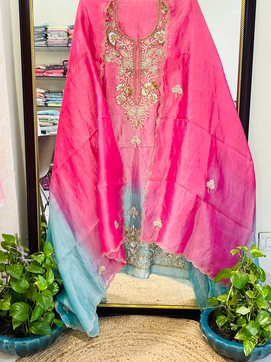 Atharva Heritage SHEER LUXURY Pure Silk Organza French Thread Embroidery with Pearl Hand Embroidered Highlight SUIT SOFTHP561