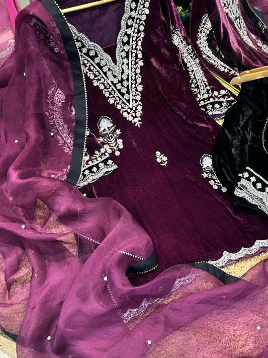 ATHARVA HERITAGE Pure Makhmal Silk Velvet Farshi Salwar Pakistani Suit~✨🌼 TVO00102