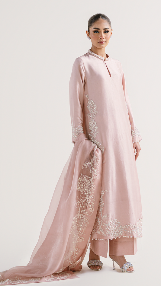 Atharva Heritage Sheer Luxury Pure Silk Ready to Wear Pakistani Suit SLP0012 Powder Pink
