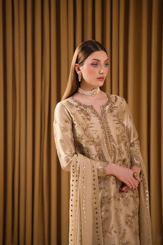 Atharva Heritage Pakistani Suit in Pure Satin Silk 80 Grams with French Thread Monochrome Embroidery & 3D Hand-Appliqué Detailing FRMONO57