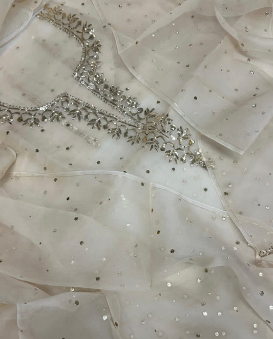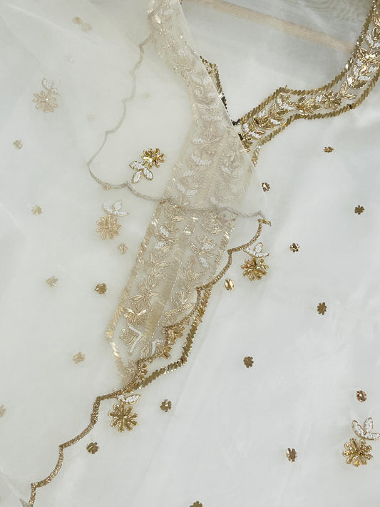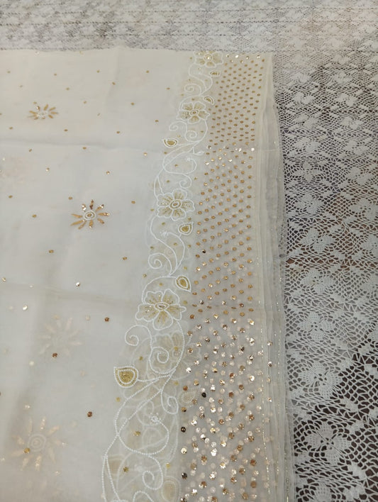 Sheer Luxury /Premium Lucknowi Collection Sheer00085 Offwhite