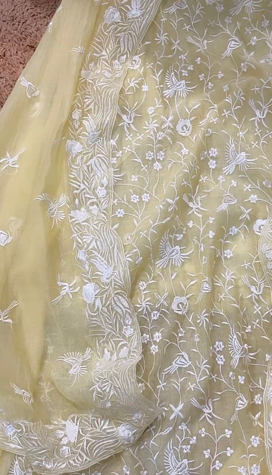 Sheer Luxury /Premium Lucknowi Collection Sheer00077 YELLOW