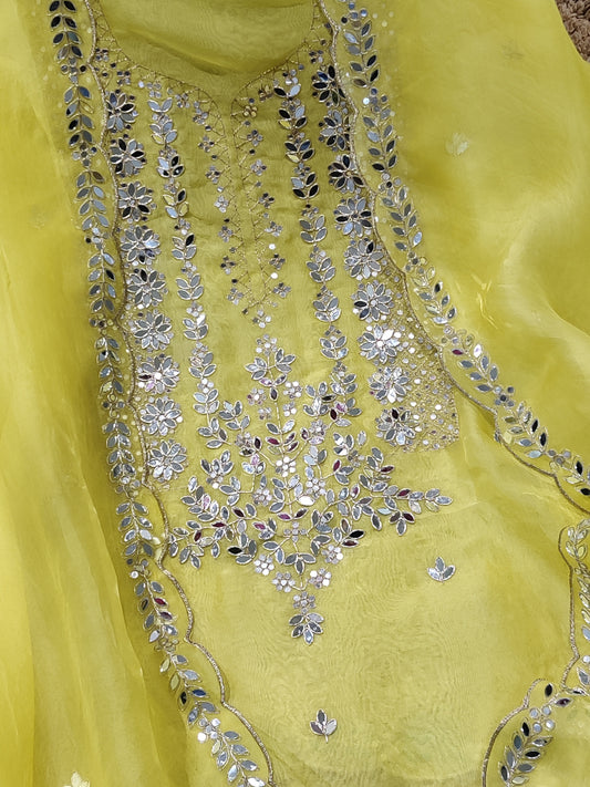PURE MUL CHANDERI SILK PARSI GARA SUIT MCH0015 Lemon Yellow