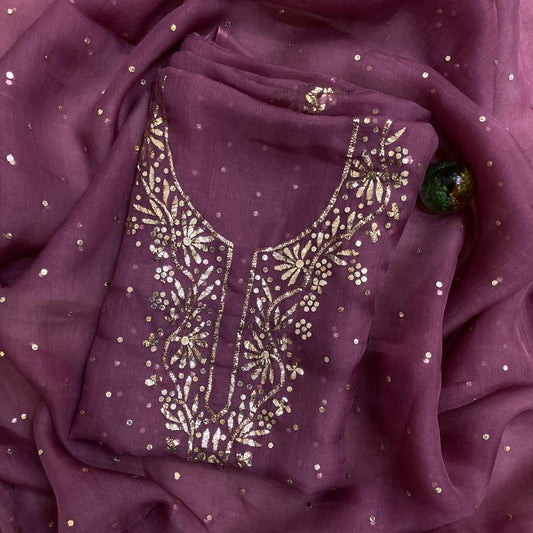 ATHARVA Hand Embroidery Salwar Kameez /Chiffon Dupatta With Stunning Gota & Trim/Custom Stitch Unstitch/Gift/Patiala/Anarkali/Churridar/CH17315 Lavender