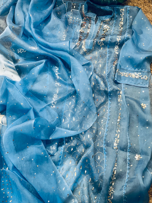 Sheer Luxury /Premium Lucknowi Semi Stitched Collection Sheer00079English blue