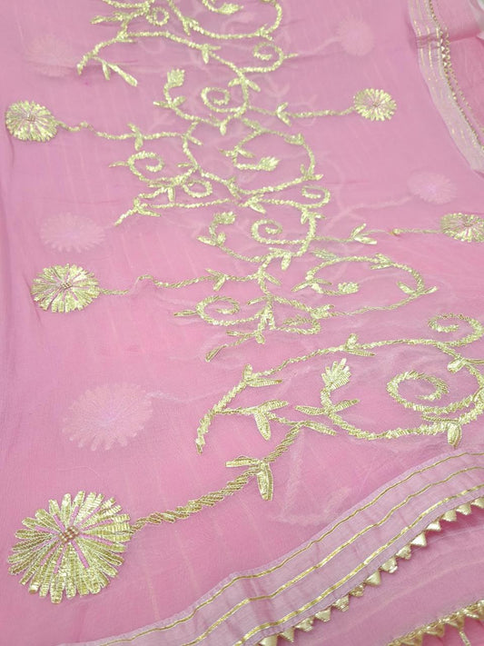 ATHARVA Hand Embroidery Salwar Kameez /Chiffon Dupatta With Stunning Gota & Trim/Custom Stitch Unstitch/Gift/Patiala/Anarkali/Churridar/CH17313 Powder Pink