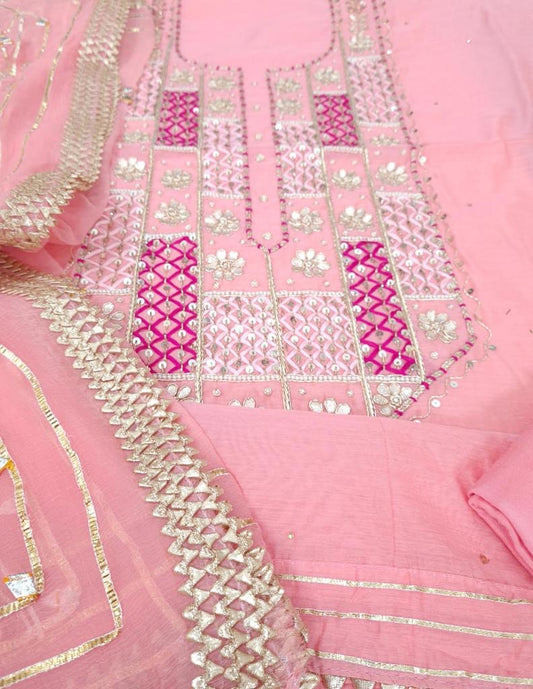 ATHARVA Hand Embroidered Salwar Kameez w/ Mint Chanderi Shirt/Gota Pati Chiffon Dupatta/Custom Stitch Unstitch/Custom Anarkali/CH18019 PINK
