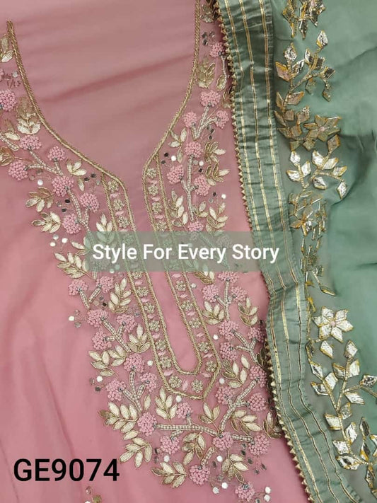 ATHARVA Hand Embroidered Salwar Kameez w/ Pink Georgette Shirt/Gota Pati Georgette Pistachio Color Dupatta/Custom Stitch Unstitch/Custom Anarkali/GE9074 Pink n pistachio