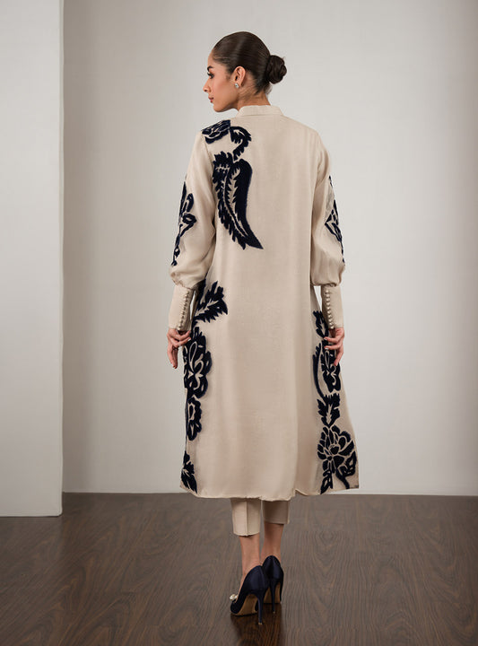 ATHARVA HERITAGE Sheer Luxury Ready to Wear Pakistani Appliqué 2PC Suit SLP05151 Beige and Black