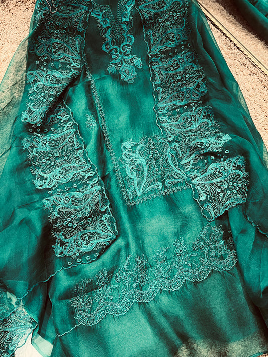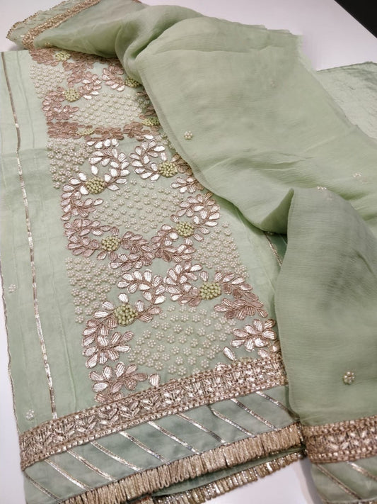 ATHARVA Hand Embroidery Salwar Kameez Pista /Chiffon Dupatta With Stone & Trim/Custom Stitch Unstitch/Gift/Patiala/Anarkali/Churridar/CH17312
