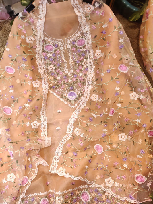 Sheer Luxury /Premium Lucknowi Collection Sheer00073PEACH