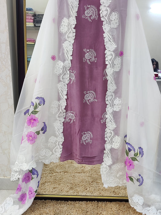 ATHARVA Cutwork Embroidery Salwar Kameez/Chanderi Cut-Work Shirt & Dupatta/Santoon Bottom/Custom Stitch Unstitch/Plazo/Pant/CUT81063 Purple