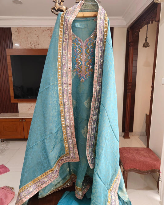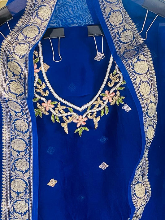 Husn Electric Blue kora silk hand embroidered suit set KS001
