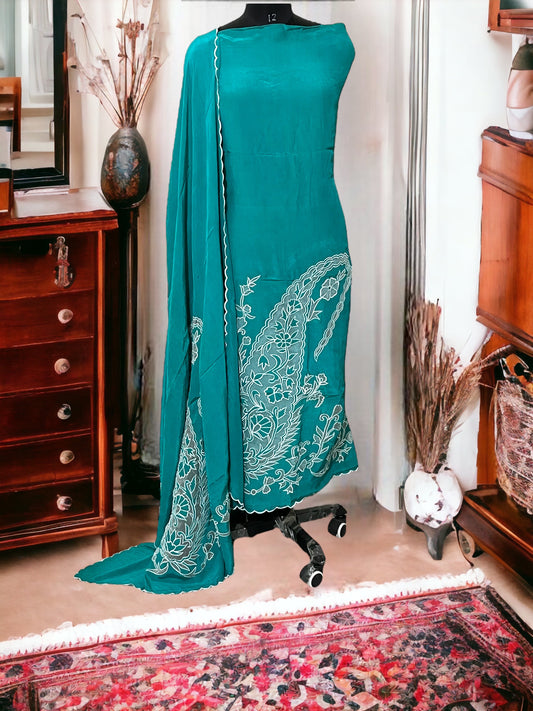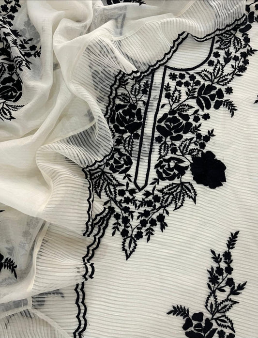 ATHARVA Cutwork Salwar Kameez/Georgeete Cut-Work/Applique Shirt & Dupatta/Santoon Bottom/Custom Stitch Unstitch/Plazo/Pant/ CUT8061