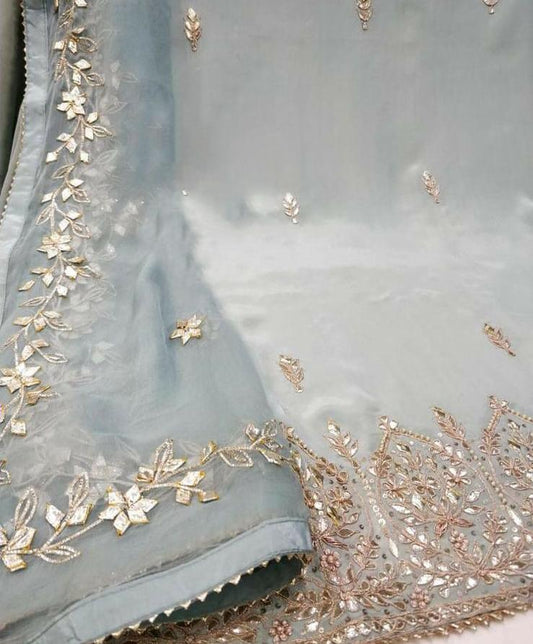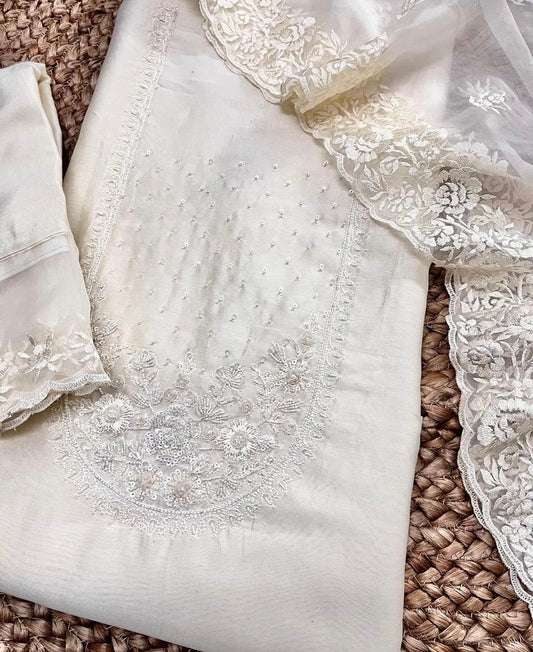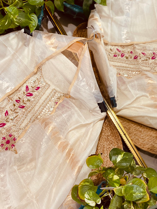 ATHARVA Hand Embroidered Salwar Kameez Chanderi Shirt/Lucknowi Silk Organza Dupatta/Custom Stitch Unstitch/Custom Anarkali/H18017
