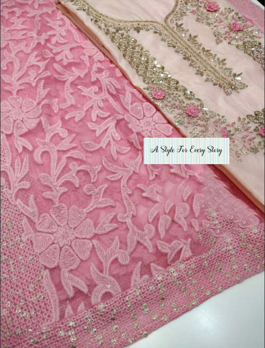 ATHARVA Cutwork Salwar Kameez/Georgeete Cut-Work/Applique Shirt & Dupatta/Santoon Bottom/Custom Stitch Unstitch/Plazo/Pant/ CUT8063