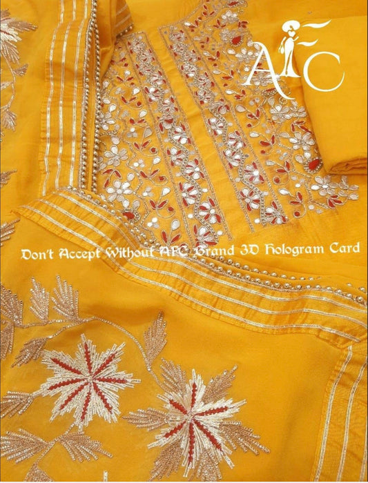 ATHARVA Hand Embroidered Salwar Kameez w/ Yellow Chanderi Shirt/Gota Pati Chiffon Dupatta/Custom Stitch Unstitch/Custom Anarkali/CH18016