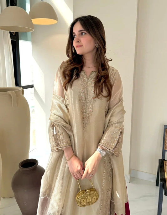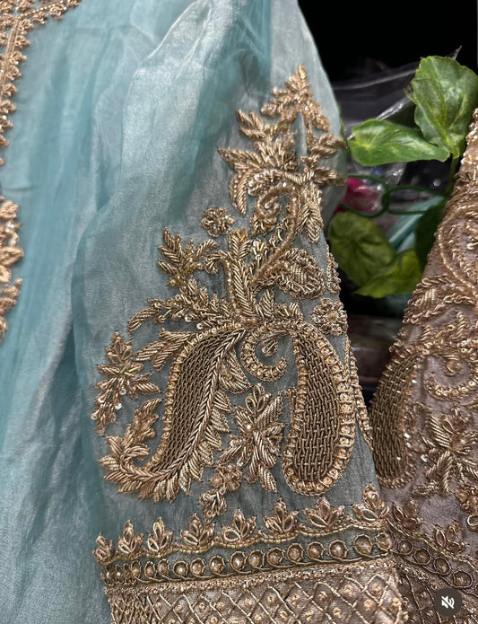 Atharva Heritage “Stunning Pure Silk Organza Pakistani Suit with French Thread Embroidery, Silk Organza Dupatta & Pure Crepe Pants