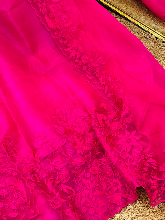 Atharva Heritage Sheer Luxury /Premium Lucknowi Collection Sheer00088 PINK