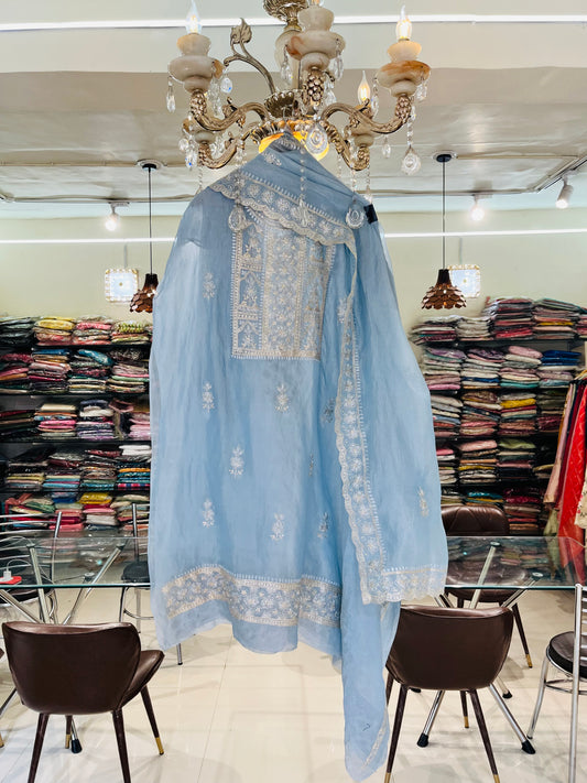 Atharva Heritage SHEER LUXURY Pure Silk Organza French Thread Embroidery SUIT SHEER00715