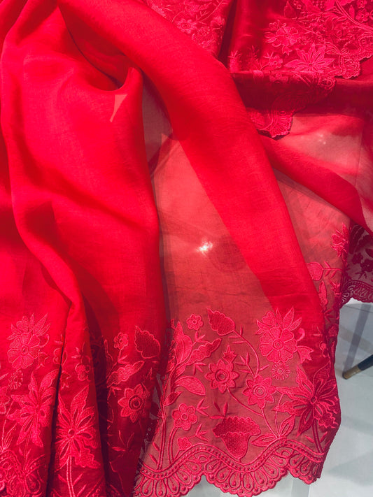 Atharva Heritage Red Kerwachauth Saree in Pure Silk Organza with French Thread Monochrome Embroidery