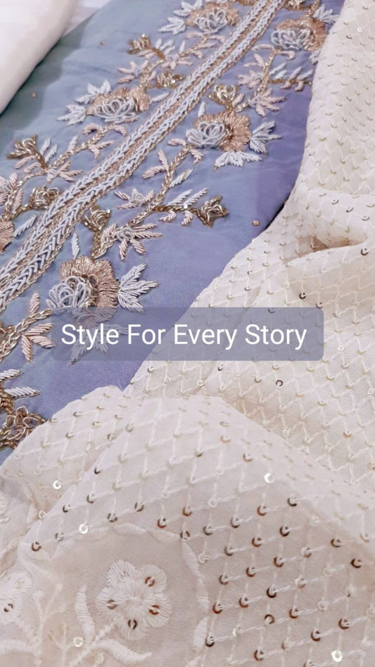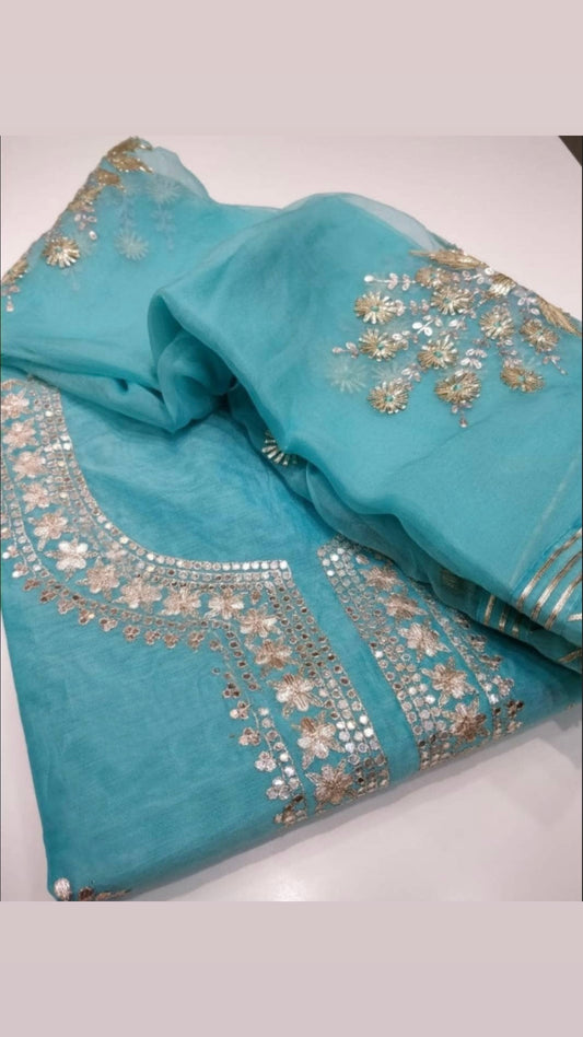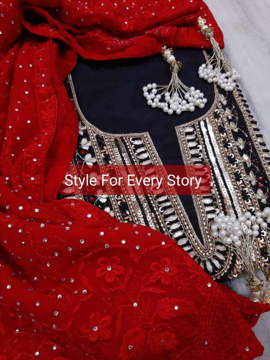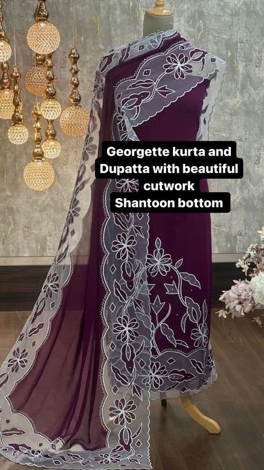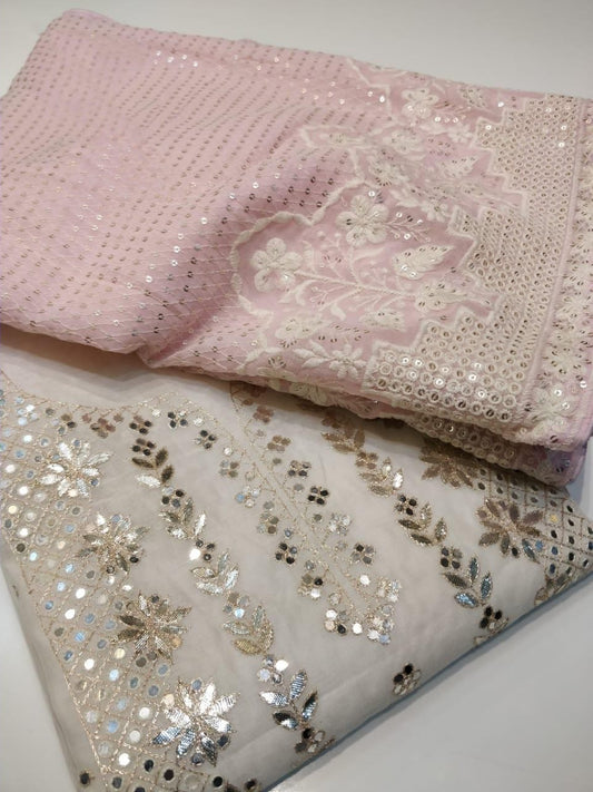 ATHARVA Hand Embroidery Salwar Kameez/Georgeete Cut-Work/Applique Shirt & Dupatta/Santoon Bottom/Custom Stitch Unstitch/Plazo/Pant/ CUT8058(A)