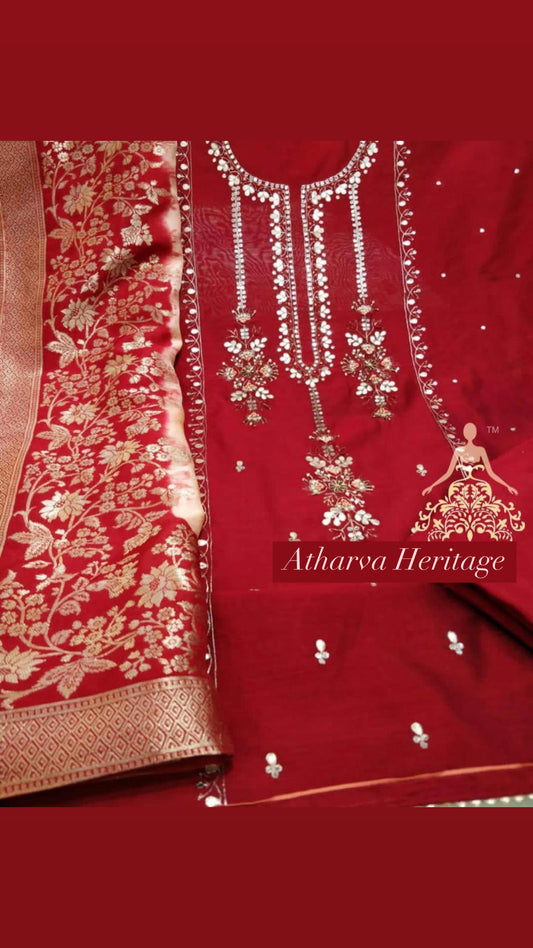 ATHARVA Hand Embroidery Salwar Kameez/Chanderi Ladies Suit/Banarsi Silk Dupatta/Stones/Custom Stitch Unstitch/Embroidery Potli/Gift/CH16769