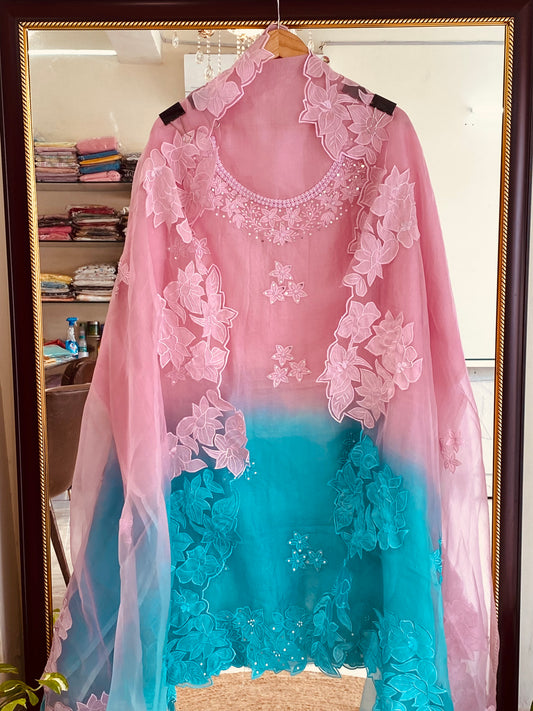 ATHARVA Stitched Applique Salwar Kameez/Chanderi Applique Shirt & Silk organza Dupatta/Santoon Bottom/Custom Stitch Unstitch/Plazo/Pant/CUT8127