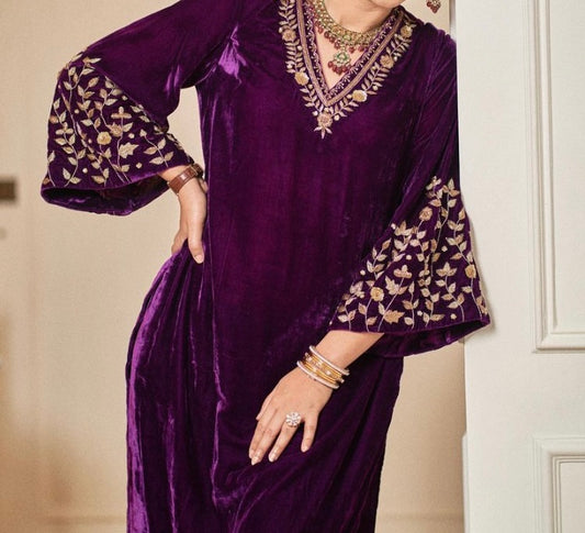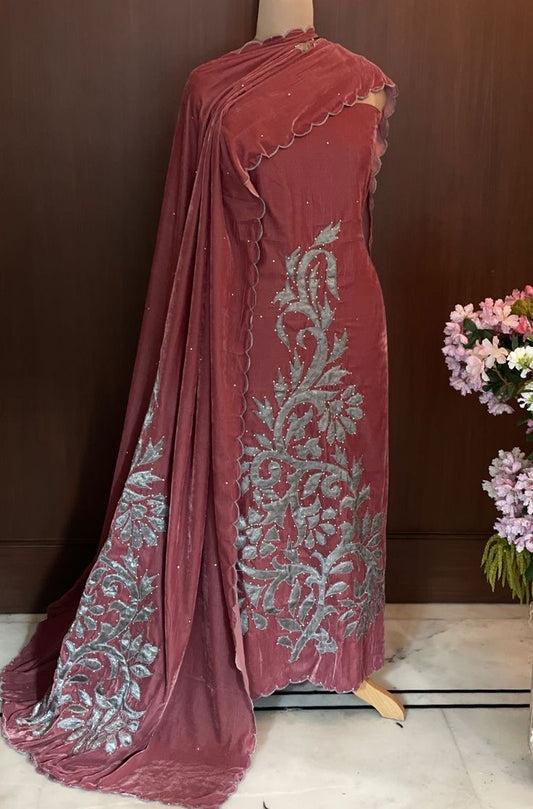 ATHARVA Applique Embroidery Salwar Kameeiz/Velvet Cut-Work Shirt & Dupatta/Velvet Bottom/Custom Stitch Unstitch/Plazo/Pant/VC8128