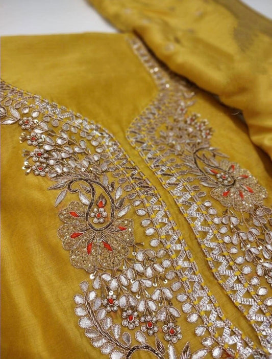 ATHARVA Hand Embroidered Salwar Kameez w/Chanderi Shirt/Gota Pati Chiffon Dupatta/Custom Stitch Unstitch/Custom Anarkali/CH18013