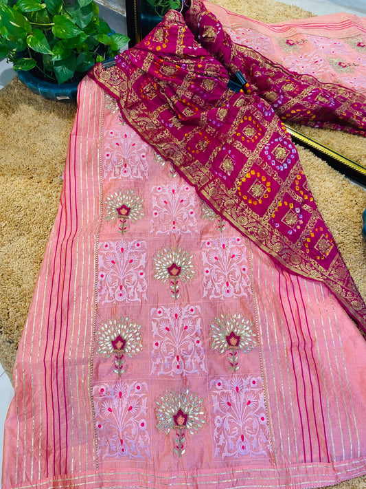 ATHARVA Hand Embroidery Salwar Kameez/Chanderi Ladies Suit/Banarsi Bandhani Dupatta/Stones/Custom Stitch Unstitched /Gift/CH16770