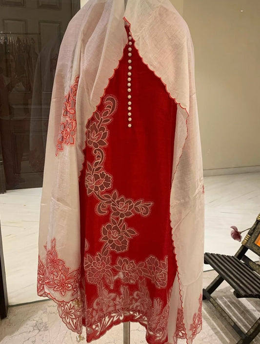 ATHARVA Applique Embroidery Salwar Kameez/Chanderi Cut-Work Shirt & Dupatta/Santoon Bottom/Custom Stitch Unstitch/Plazo/Pant/CUT8119