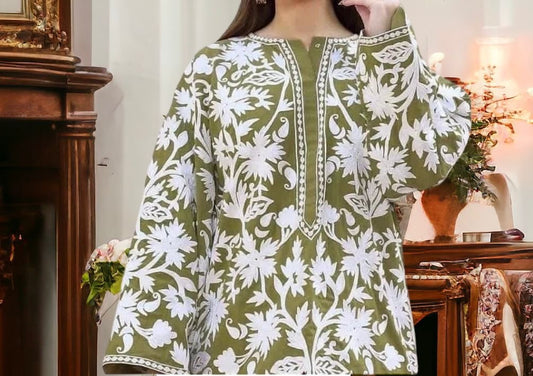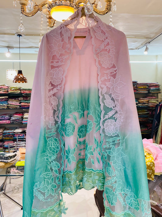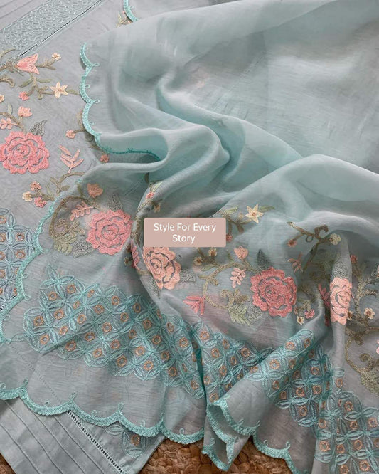 ATHARVA Stitched Applique Salwar Kameez/Chanderi Applique Shirt & Silk organza Dupatta/Santoon Bottom/Custom Stitch Unstitch/Plazo/Pant/CUT8117