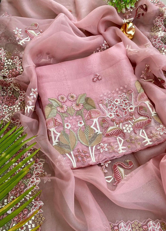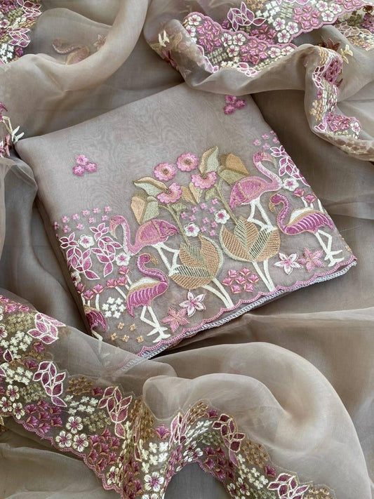 Atharva Heritage/SHEER LUXURY PARSI GARA FLAMINGO SUIT SHEER006(E)