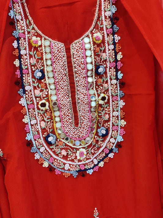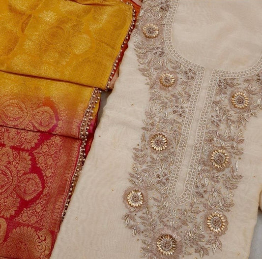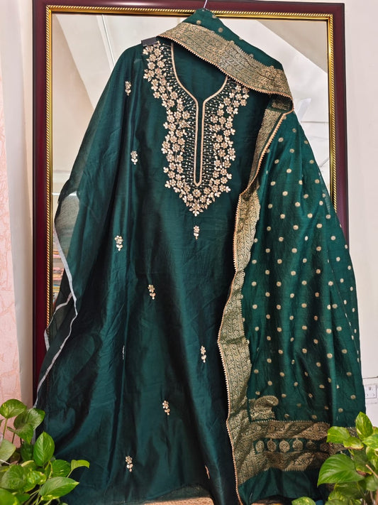 ATHARVA Hand Embroidery Salwar Kameez/Chanderi Cut-Work Shirt & Dupatta/Santoon Bottom/Custom Stitch Unstitch/Plazo/Pant/CUT8110