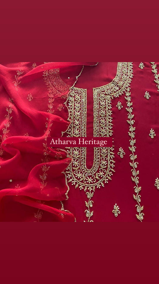 Atharva Heritage/ Georgette Hand Embroidered Knot Work SUIT GR0011