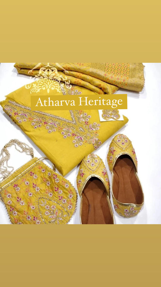 ATHARVA Hand Embroidery Salwar Kameez/Chanderi Ladies Suit/Banarsi Silk Dupatta/Stones/Custom Stitch Unstitch/Embroidery Potli/Gift/CH16764