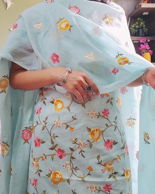 ATHARVA Hand Embroidery Salwar Kameez/Chanderi Ladies Suit/Pure Silk Organza Dupatta/Cut Dana/Custom Stitch Unstitch/Gift/CH16765