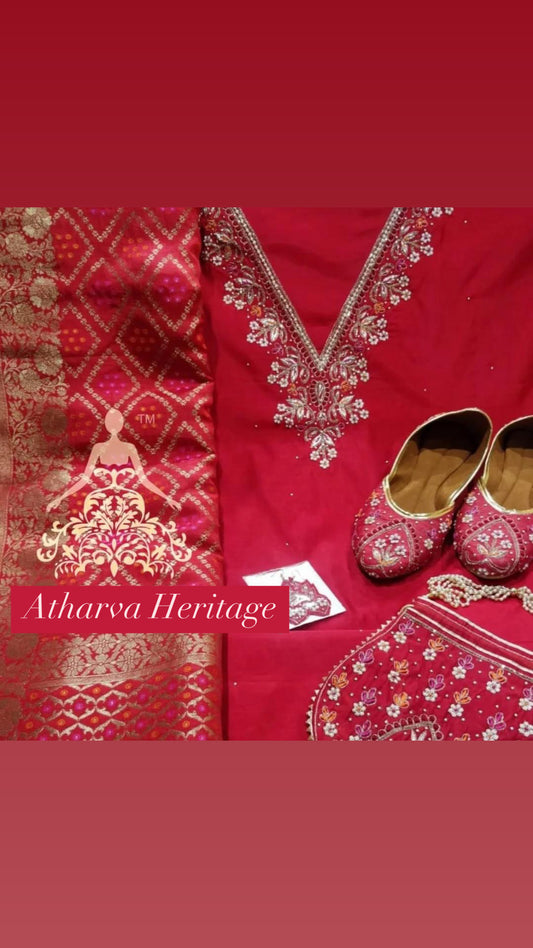 ATHARVA Hand Embroidery Salwar Kameez/Chanderi Ladies Suit/Bandhani Banarsi Silk Dupatta/Stones/Custom Stitch Unstitch/Embroidery Potli/Gift/CH16763