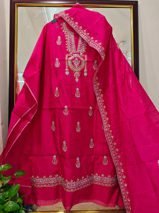 Atharva Heritage MAHARANI LUXURY CHANDERI SILK 70 GRAMS PITA EMBROIDERY SUIT MCCH0015