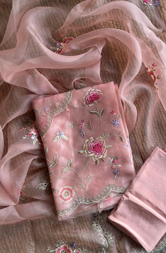 Atharva Heritage Sheer Luxury Pure Silk Organza Parsi Gara 3Pc Suit SOPG0056