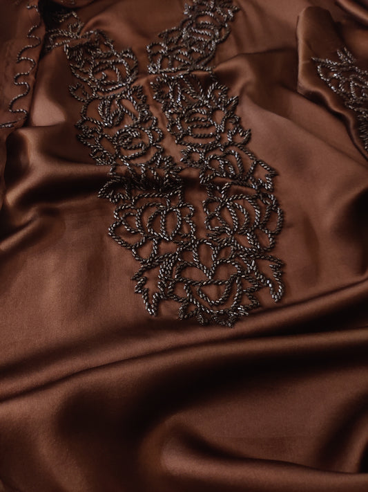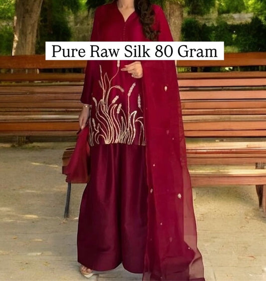 Atharva Heritage “Stunning Pure Raw Silk Pakistani Suit with French Thread Embroidery, Silk Organza Dupatta & Pure Crepe Pants – Fully Stitched from Small to 9XL”