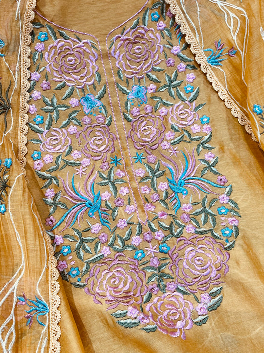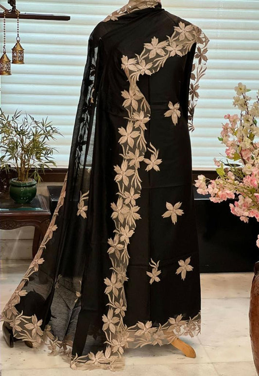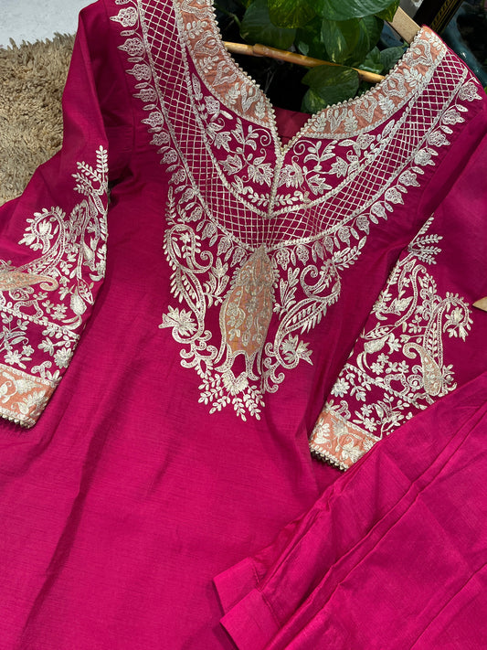 ATHARVA Hand Embroidery Salwar Kameez/Chanderi Appliqué -Work Shirt & Dupatta/Santoon Bottom/Custom Stitch Unstitch/Plazo/Pant/CUT8030