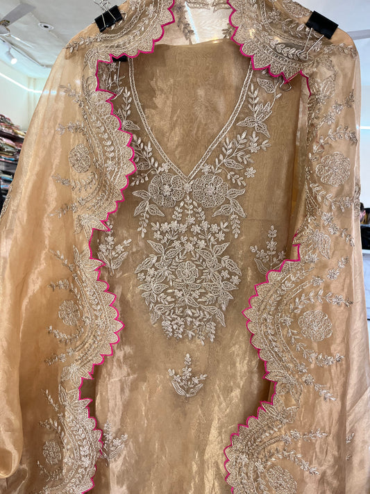 Atharva Heritage MAHARANI LUXURY TISSUE SILK With Pita Embroidery SUIT MTC003 Antique Gold
