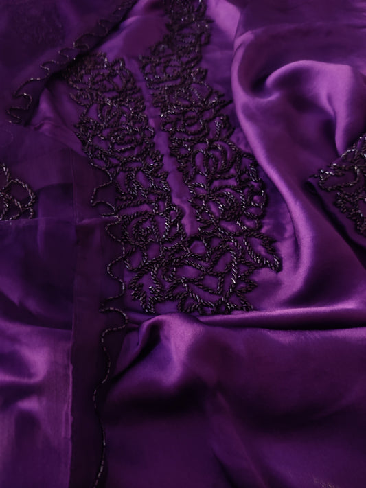 Atharva Heritage SHEER LUXURY PURE SILK ORGANZA HAND APPLIQUE UNSTITCHED SUIT SHEER001G